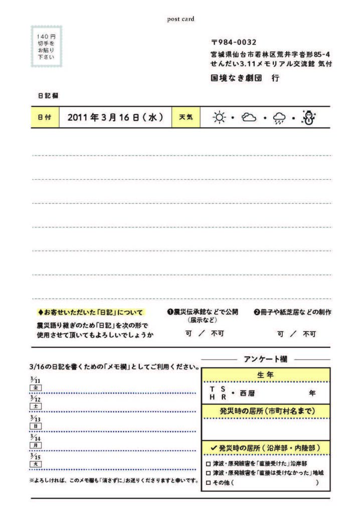 - 2011年3月16日(発災から5日目)の思いを「日記」にしてお送りください。